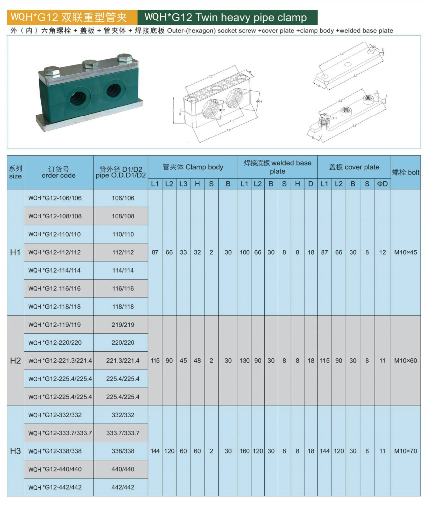 WQH*G12 Twin heavy pipe clamp